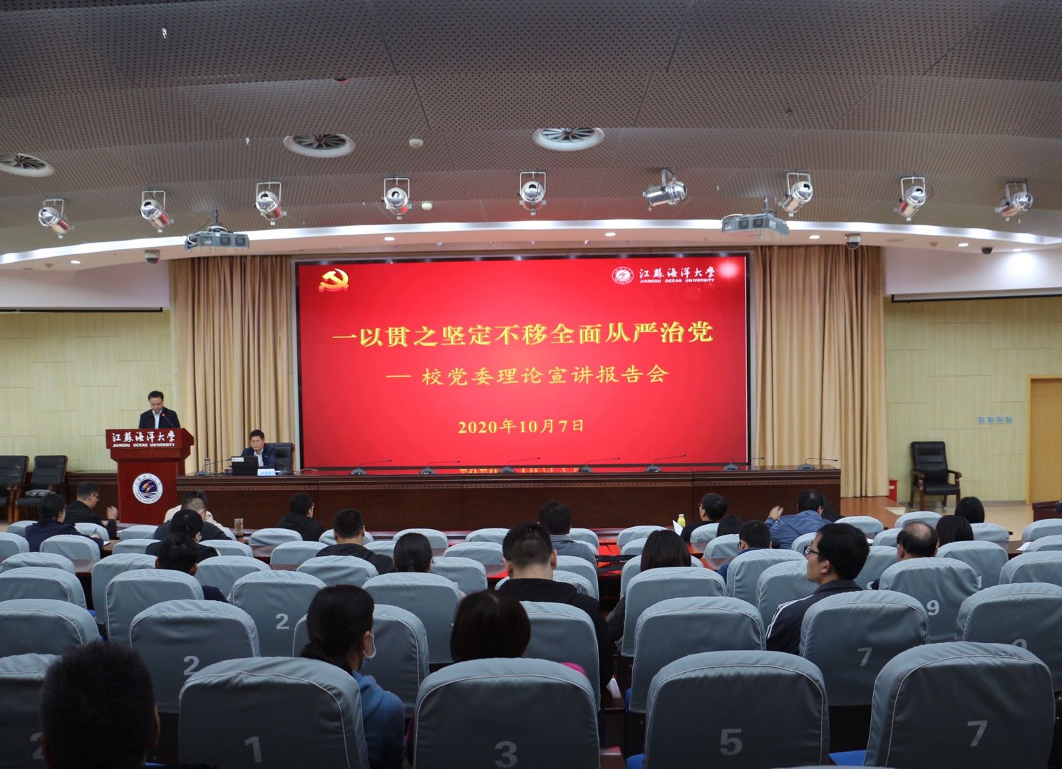 为深入学习贯彻习近平新时代中国特色社会主义思想,全面落实新时代党的建设总要求和管党治党责任,推动全面从严治党向纵深发展、向基层延伸,为学院事业发展、内涵建设提供坚强组织保证,10月7日下午,机械工程学院、环境与化学工程学院在会议中心黄海厅联合举行“一以贯之坚定不移全面从严治党”理论宣讲报告会,邀请校党委理论宣讲团成员、校纪委副书记汪守建作专题报告。报告会由环境与化学工程学院党委书记张明星主持,机械工程学院、环境与化学工程学院全体教职工聆听了报告。