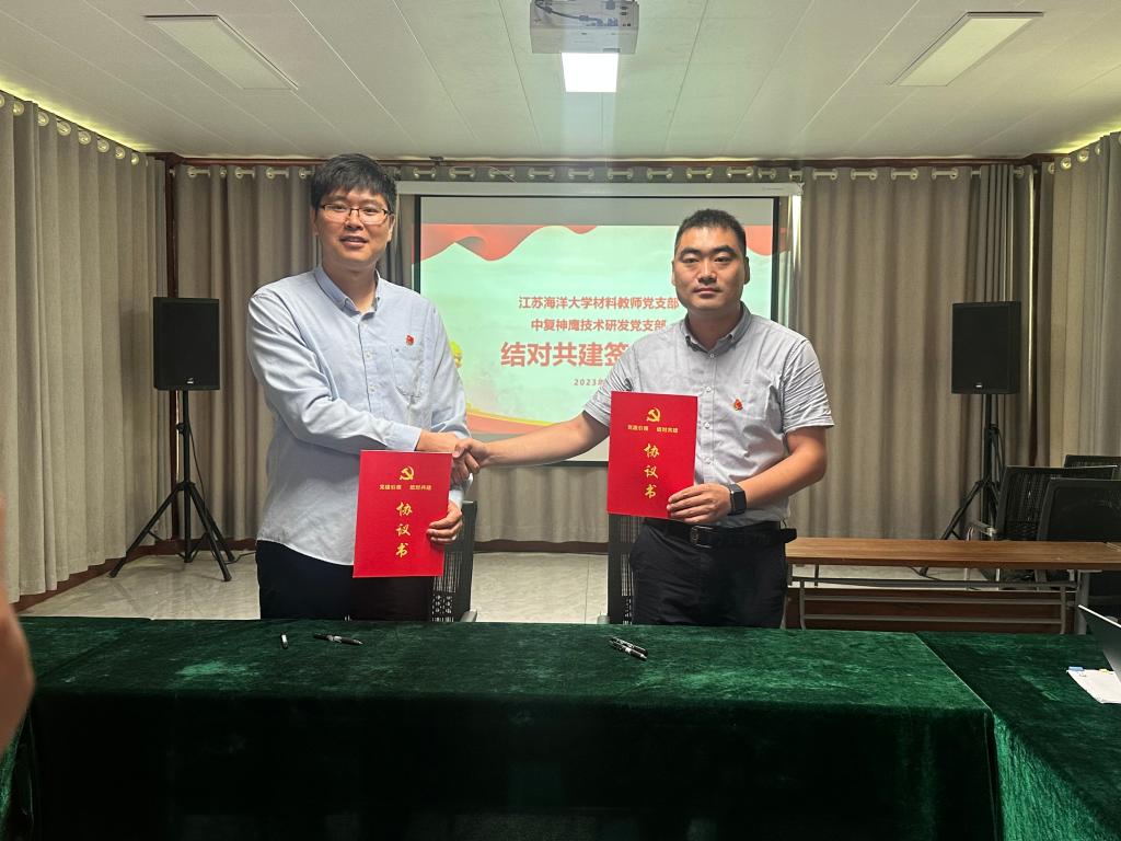 活动中,材料系教师党支部与中复神鹰研发党支部举行结对共建签约仪式,中复神鹰党支部书记刘栋、材料科学与工程系教师党支部书记班鑫鑫代表双方在共建协议书上签字。仪式上,共建双方分别就党支部情况进行了详细介绍,明确互促高质量发展的目的,商定结对共建内容。会上,支部重点围绕组织建设互促、党员干部互动、党建载体互用、结对帮扶互助“四互”和共同为群众办一件实事、共同上一次党课、进行一次联合组织生活会、共同进行一次党建共建促膝谈“四个一”开展共建活动。