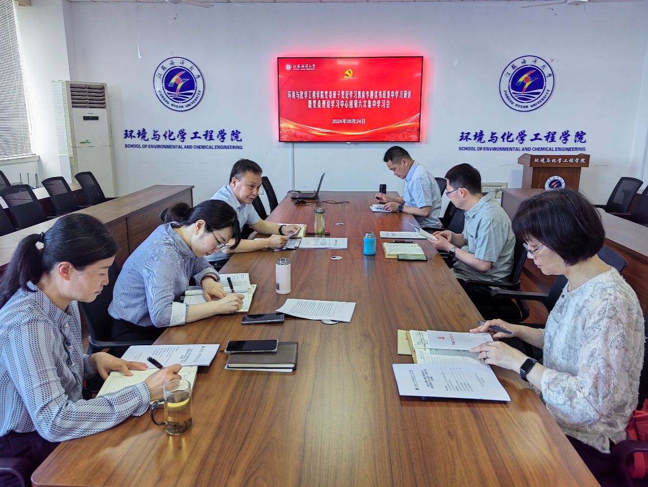 5月24日下午,环境与化学工程学院召开党委班子党纪学习教育专题读书班集中学习研讨暨党委理论学习中心组第六次集中学习会,学院党委书记张明星主持会议,学院党政领导班子成员参加会议。