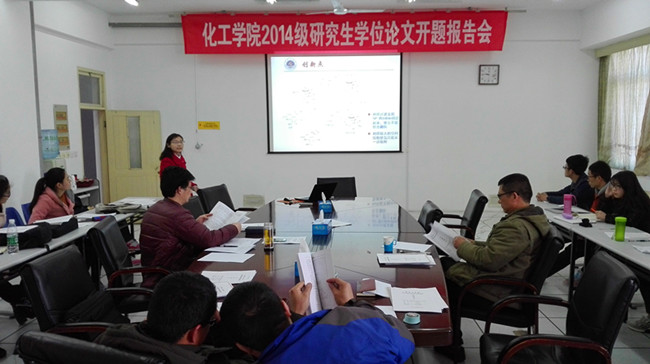 3月27日上午,化学工程学院 “化学工程与技术”专业首届自主培养研究生学位论文开题报告在主楼举行。2014级研究生参加报告会并做了报告, 2015级研究生参加学习,化学工程学院院长童志伟教授、副院长张东恩教授、张田林教授、张珍明教授、刘霖副教授、陶传洲副教授及药学院副院长马卫兴教授、宋晓凯教授担任此次报告会的评审专家。