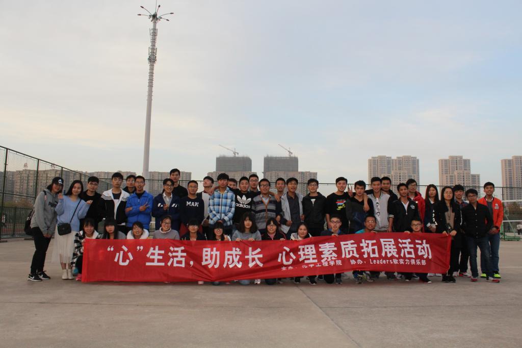 11月12下午2点,化学工程学院学生会和Leader软实力俱乐部在苍梧校区西操场一同举办了以“心生活”为主题的心理素质拓展活动。Leaders俱乐部会长邵世统同学担任活动主持人。