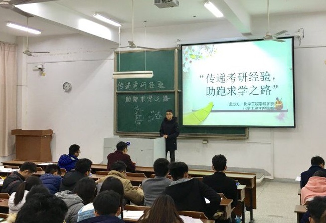 11月28日19时,化学工程学院团委和慎勤班于文通楼B楼205室举行以“传递考研经验,助跑求学之路”为主题的考研经验交流指导大会。团委负责人马昌老师出席本次会议,研究生三年级肖鑫同学和文治天同学,青马工程学员与慎勤班全体成员参与本次会议,团委干事杨瑛担任主持。