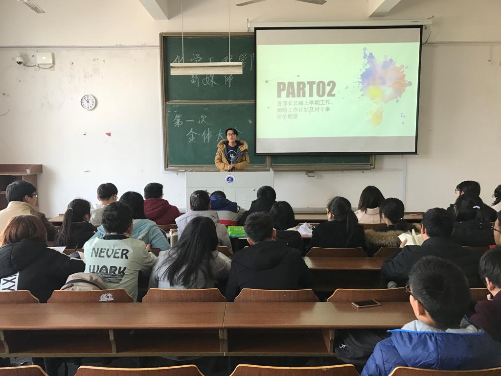 会议伊始,王璐璐简单介绍了会议流程,总结上学期的工作。接着,各部长依次上台发言,汇报近期工作,阐明工作计划,并对各部门干事给予深切的期望,要找准自己的定位。其中,办公室副部孙威的发言让人印象深刻。他说:“现在我们再做事情时,不能再以一名干事的眼光看待事情,要从部长的角度出发,规划全局。”随后,各优秀代表向其他的同学讲述了自己如何做好学习与工作之间的平衡。