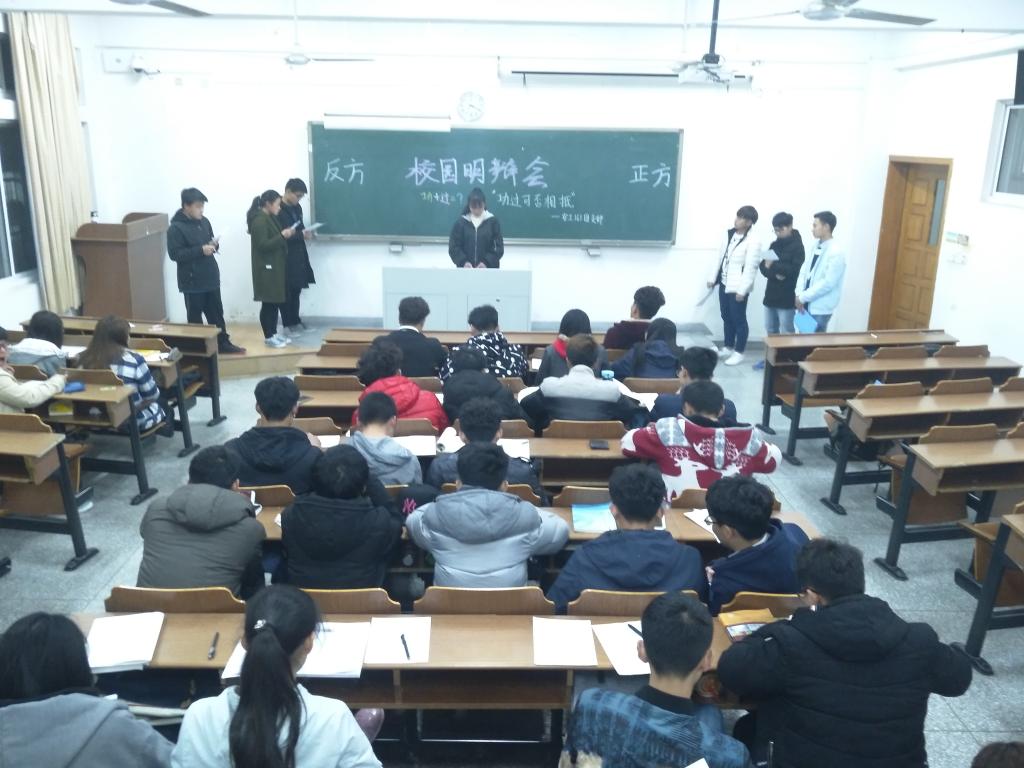 本次校园明辩会不仅给同学们提供了一个展示自我的舞台,提高了班级凝聚力,而且在一定程度上增强了同学们的人文素养,丰富了课余生活。