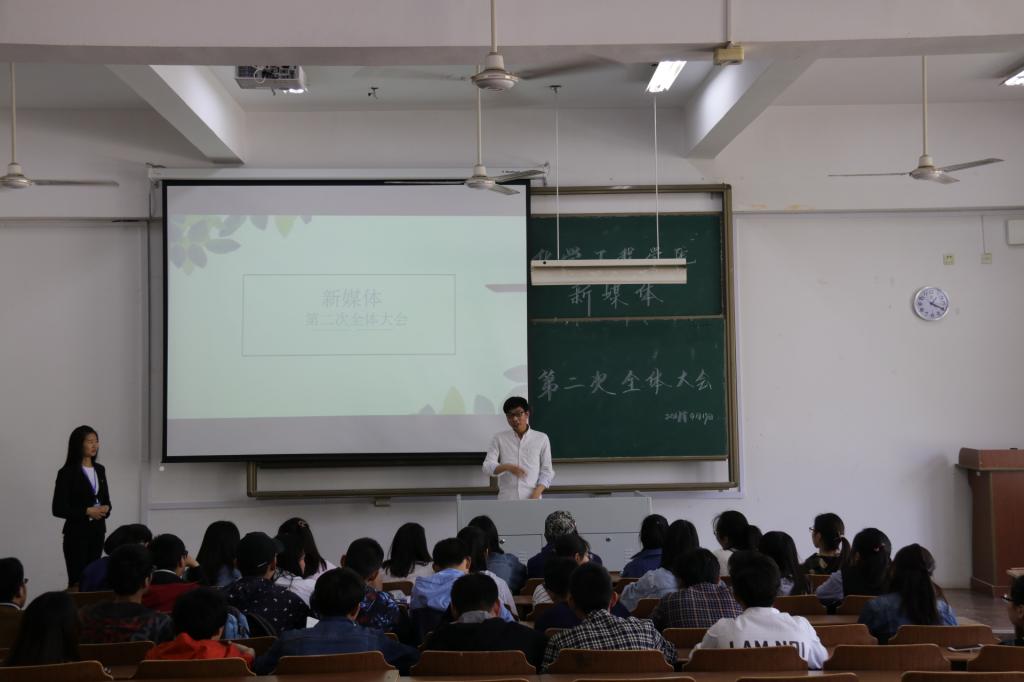 会议伊始,主持人介绍会议流程后,主任王璐璐上台发言。她总结了这个月新媒体做的各项工作,并对各个部门部长及干事给予深切的厚望,希望所有的成员们都具有主人翁意识,把自己当做每一个活动的主人。接着,各部门部长发表讲话汇报近期工作情况及提出以后的工作计划,他们一致认为新媒体这个集体愈来愈像一个荣辱与共的大家庭,每个人都积极向上,并在工作上紧密配合。之后,主任王晶晶上台总结发言:“看到新媒体在你们的努力下越来越好,我很高兴。希望各部门术业有专攻,在技术方面能够更上一层楼”。