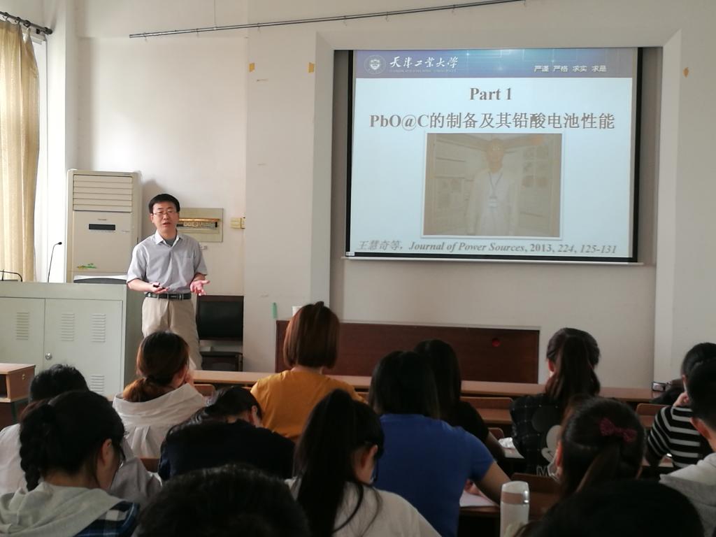 5月21日上午十点,天津工业大学博士生导师,中国化工学会无机酸碱盐分会学术带头人,中国电工学会超级电容器专业委员会副秘书长赵永男教授在化学工程学院二楼会议室作了题为《电化学储能材料的制备与性能》的学术报告,报告会由化学工程学院副院长张东恩教授主持,化学工程学院的全体研究生及部分教师参加了此次报告会。