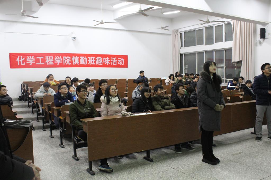12月14日19时,化学工程学院慎勤班于文通楼东207室举办趣味活动。2017级慎勤班全体成员参加本次活动,慎勤班成员付书翔昊担任本次活动主持人。