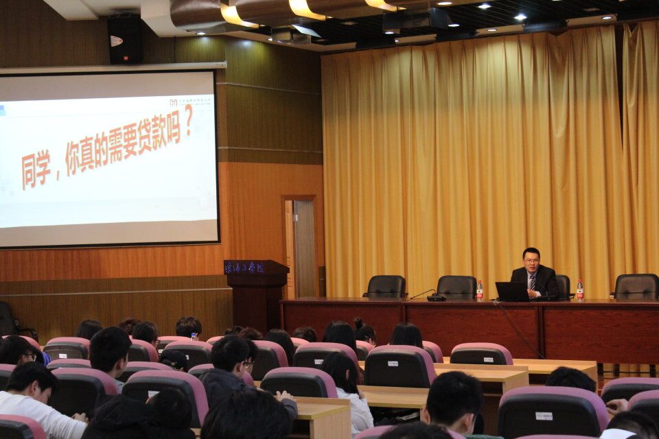 首先,戴高明律师向大家介绍大学生最容易陷入的金融陷阱,主要为电信诈骗与校园贷款两种。其中校园贷款对象是没有经济收入的大学生,他向大家逐条列举主要的陷阱类型,并重点介绍了三种贷款类型:一是专门针对大学生的分期购物平台,二是P2P贷款平台,三是阿里、京东、淘宝等传统电商平台提供的信贷服务。此外,他用鲜活的事例告诉大家校园贷有着巨大的危害,校园贷使不少大学生掉入“高费贷”陷阱,却投诉无门,陷入恶性循环。