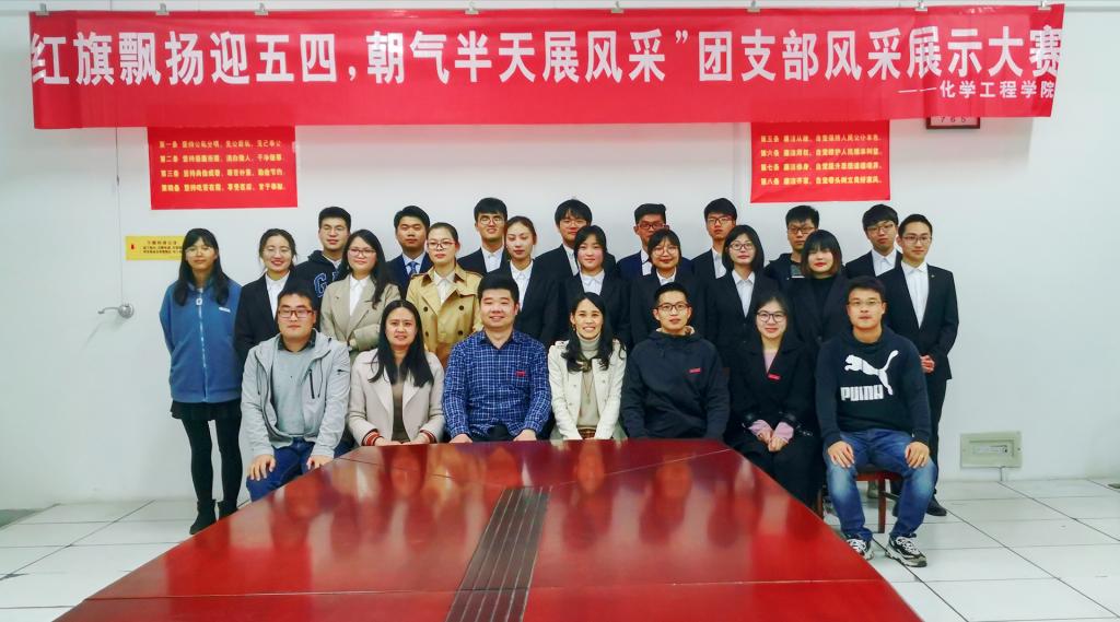 4月12日晚6时30分,化学工程学院于主楼1006室举办“红旗飘扬迎五四,朝气半天展风采”团支部风采展示大赛,化学工程学院党委副书记王改红老师、校团委组织部部长郭戈老师、校保卫处魏灵钢老师、校学生工作处穆亮亮老师、艺术学院团委副书记高慧老师和化院全体辅导员老师出席本次活动,各团支部团员青年代表参加了本次大赛,张凯丽同学担任本次大赛主持人。