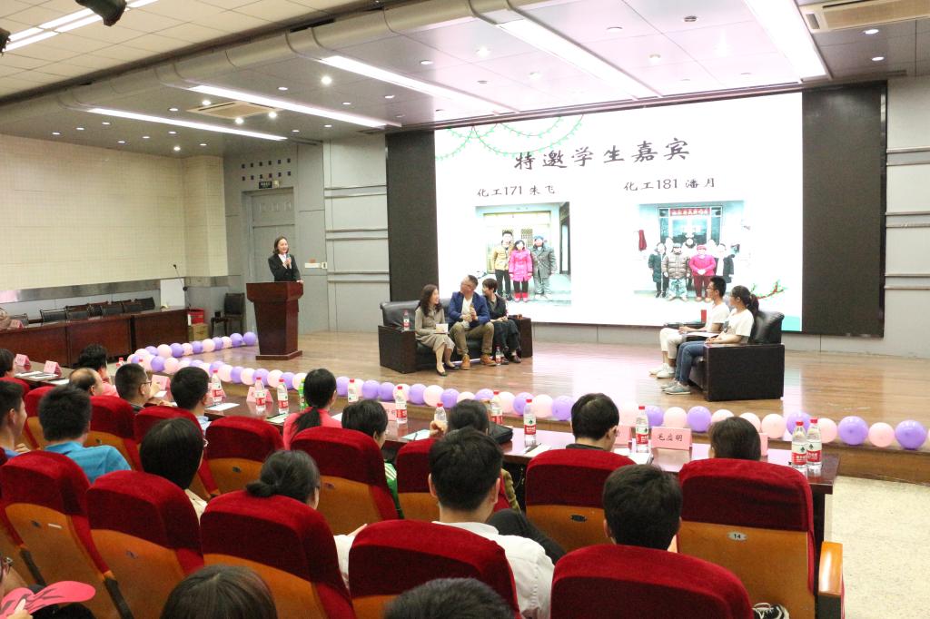 5月21日晚6时30分,化学工程学院于艺术楼报告厅举办了“坚韧之美,你我同行”之“心海拾贝”心理访谈活动。学院特邀国家二级心理咨询师瞿世刚、江萍、张悦秋三位专家、校心理中心主任解如华、全体辅导员及班主任出席本次活动,学院大一、大二近三百余名同学参加。任和担任活动主持人。
