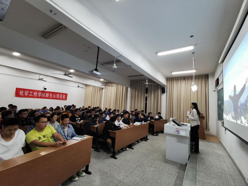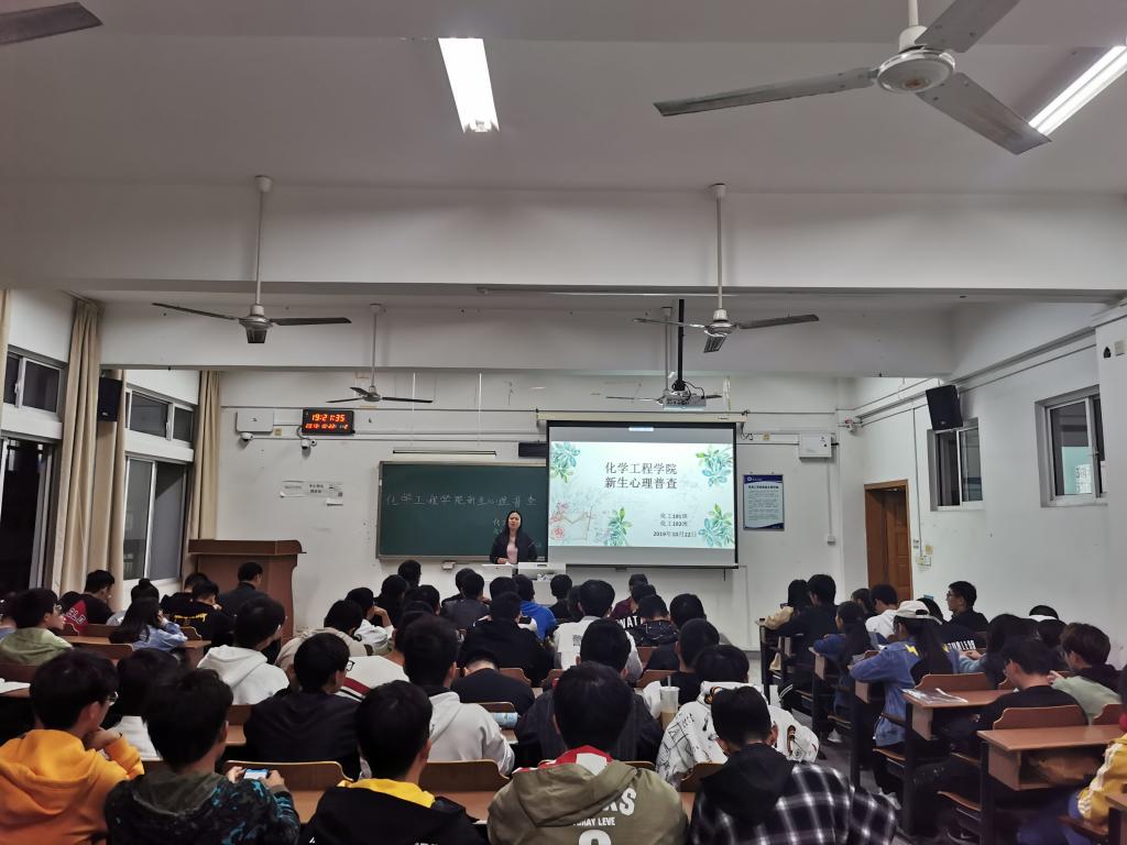 10月22日晚7时,化学工程学院于文通楼317、319和321教室分别进行2019级新生心理普查活动。化学工程学院党委副书记王改红、分管学院心理工作的辅导员王学梅老师出席活动。化学工程学院2019级200余名新生全部参加测试。