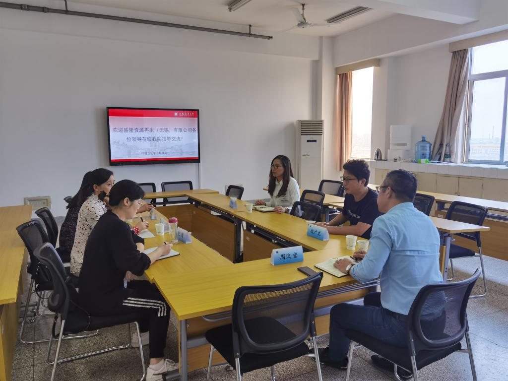 9月23日下午,环境与化学工程学院与盛隆资源再生(无锡)有限公司在教学主楼1003会议室举行了校企合作推进会,盛隆资源再生(无锡)有限公司人事行政总监周迎宝、研发中心经理马斌斌、人事行政总监助理吴婷、研发项目组长虞凯及学院分管院长陶传洲、相关专业教师和班主任出席会议。