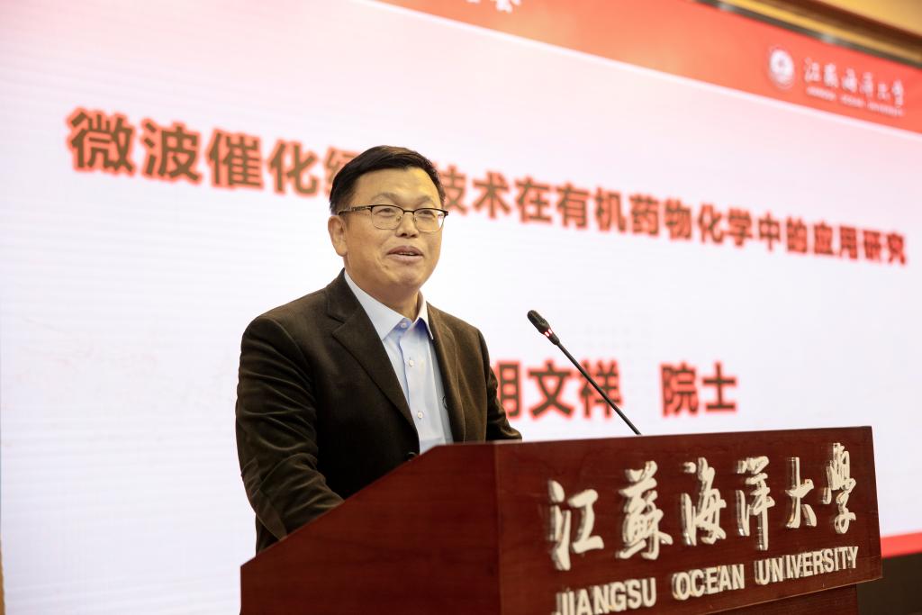 10月19日下午,俄罗斯自然科学院外籍院士胡文祥应邀来我校作学术交流,在会议中心黄海厅胡文祥院士作题为“微波催化绿色技术在有机药物化学中的应用研究”的学术报告。校长宁晓明出席报告会,副校长许兴友主持报告会,环境与化学工程学院党政领导及师生代表150余人参加了报告会。