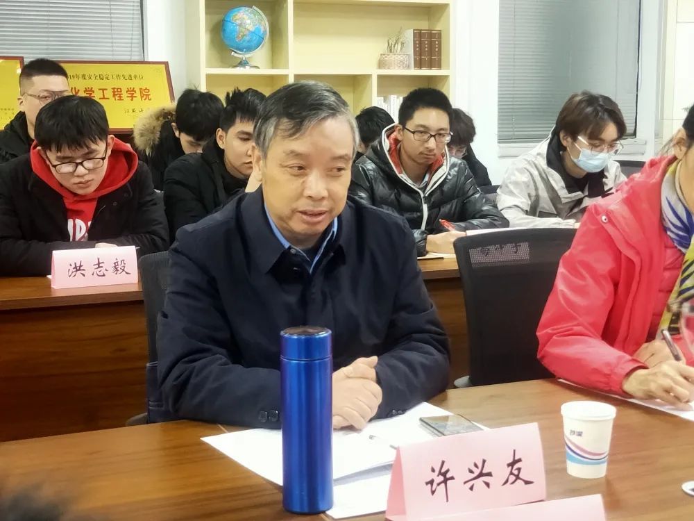 12月17日下午6时,校领导许兴友副校长联系环境与化学工程学院安工191班于主楼1003室开展交流指导会。学院党委副书记王改红、辅导员程艺和安工191班全体同学参加会议。