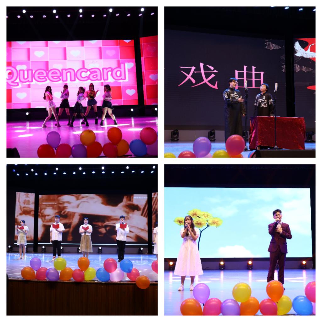 相声《学戏曲》融说唱逗笑于一体,幽默的表演、诙谐的桥段让现场观众忍俊不禁;舞蹈《Queencard》将现场气氛推向高潮,欢呼声不断;一曲《梦里花》唱出了青春的纯洁无瑕;由本科生第一、第二党支部带来的朗诵《青春中国》讴歌伟大时代,展现青年风采。
