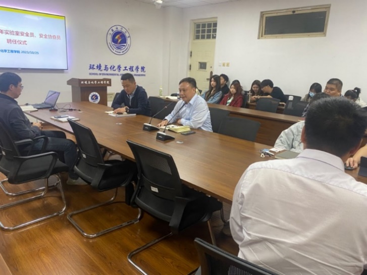 为进一步增强研究生的安全责任意识,提升安全防范和应对能力,10月25日下午,环境与化学工程学院在教学主楼1003室举行2023年秋季学期研究生安全教育培训暨2023-2024学年实验室安全员、实验室安全协查员授聘仪式,学院党委书记张明星、副院长陶传洲、实验中心毛应明主任以及学院全体研究生参加了本次大会,会议由陶传洲主持。