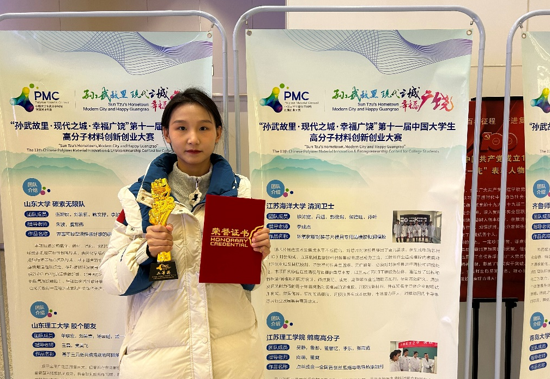11月14日,由中国石油和化学工业联合会、中国化工教育协会、中共广饶县人民政府和橡胶谷集团有限公司联合主办的第十一届中国大学生高分子材料创新创业大赛(PMC大赛)在东营市广饶县举行。本届PMC大赛参赛作品限定在橡胶、塑料、涂料、胶黏剂、纤维、功能材料领域,初赛阶段吸引了包括山东大学、青岛科技大学、四川大学、江南大学、常州大学在内的全国28个省市自治区191所高校的711支团队报名参赛,经过评审遴选,共60个优秀项目最终入围决赛。其中,我院由徐沛宽、吕进、郭俊瑕、侯德旺、孙叶组成的“清润卫士”团队入围决赛。