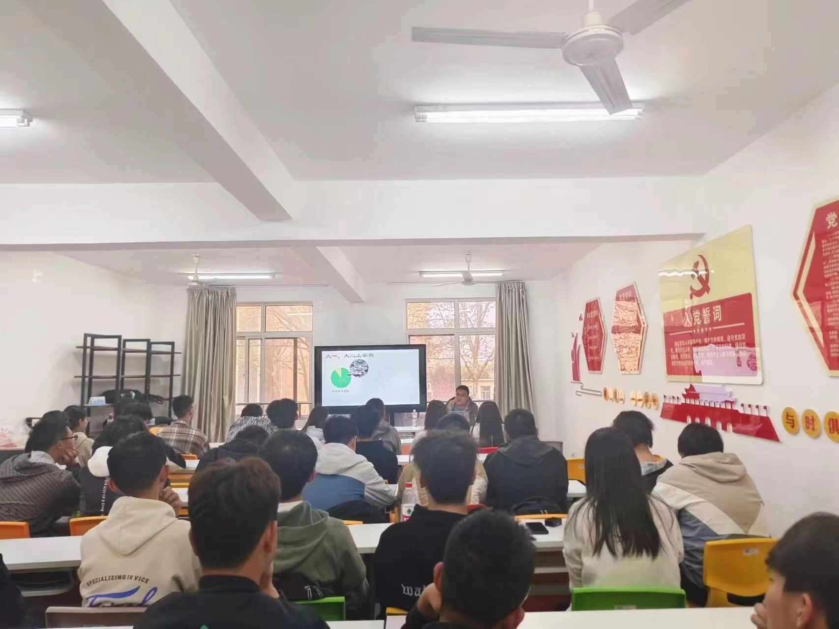 活动中,杨校毅老师结合鲜活的案例讲述了生涯规划的相关策略和正确处理心理压力的方法,要求同学们在专业学习和学生组织工作等方面做好平衡,及时调整压力。公丕成老师分享了自身的大学经历以及备战考研的艰苦历程,并针对同学们最常见的一些困惑给予解答,鼓励同学们积极的面对压力与挑战,超越自我,追求卓越! 在互动环节,“老师,我现在的压力就有点调整不过来,各种事情都堆在一起没法好好的处理,怎么办呢?”“老师,您对独善其身的理解是什么?”……同学们一一抛出困扰自己的问题,老师们逐一进行耐心解答,活动现场响起阵阵热烈的掌声!