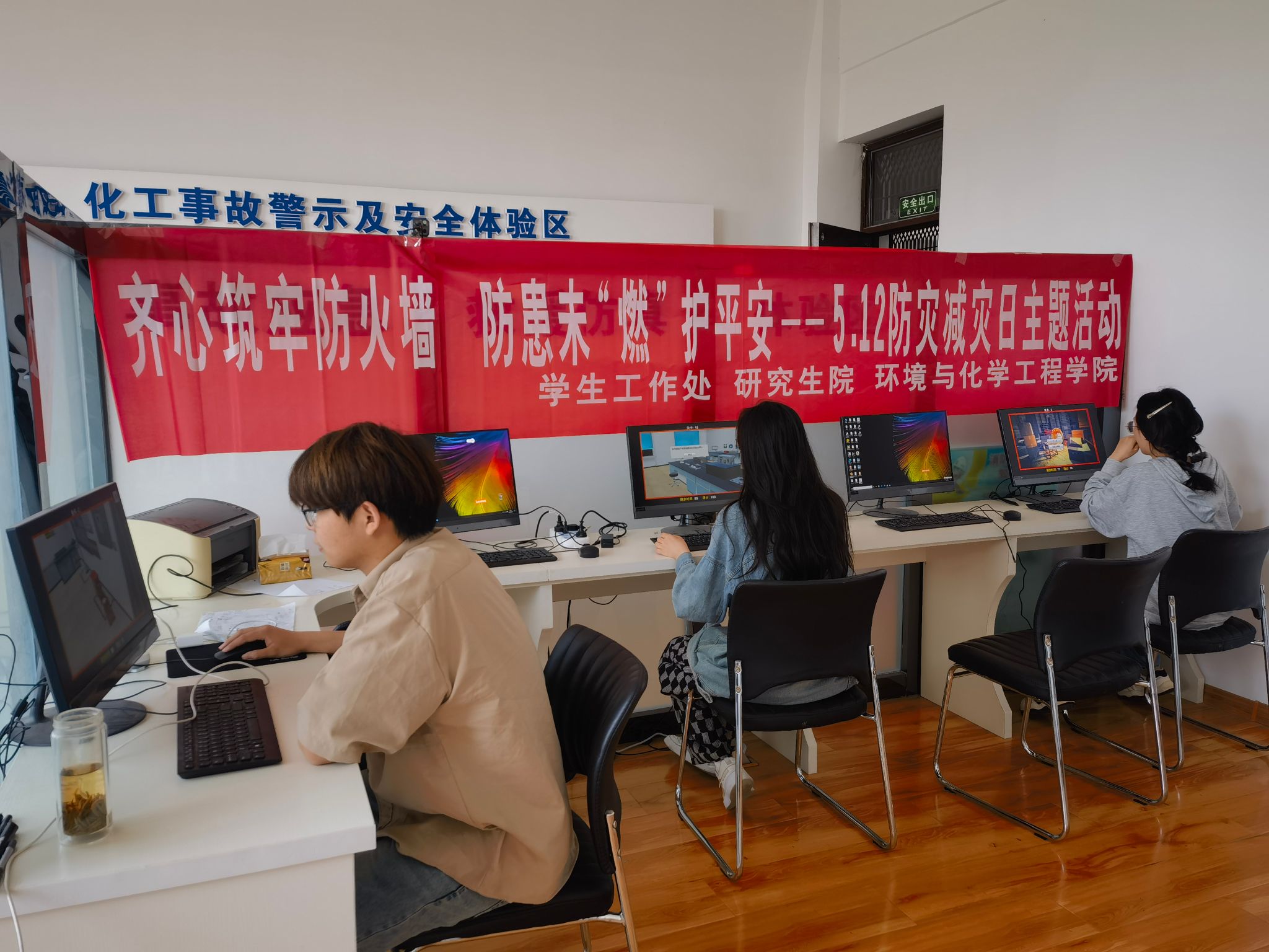 今年的5月12日是我国第16个防灾减灾日,主题是“人人讲安全、 个个会应急”,为了进一步加强防灾减灾知识的普及教育,提高我校师生对各类突发事件的防范意识和自我保护能力。5月12日至15日,党委学生工作部、党委研究生工作部联合环境与化学工程学院在江苏省智慧安全工程研究中心举办首届“齐心筑牢防火墙 防患未‘燃’护平安”消防安全技能大赛。相关部门领导和老师出席本次活动。