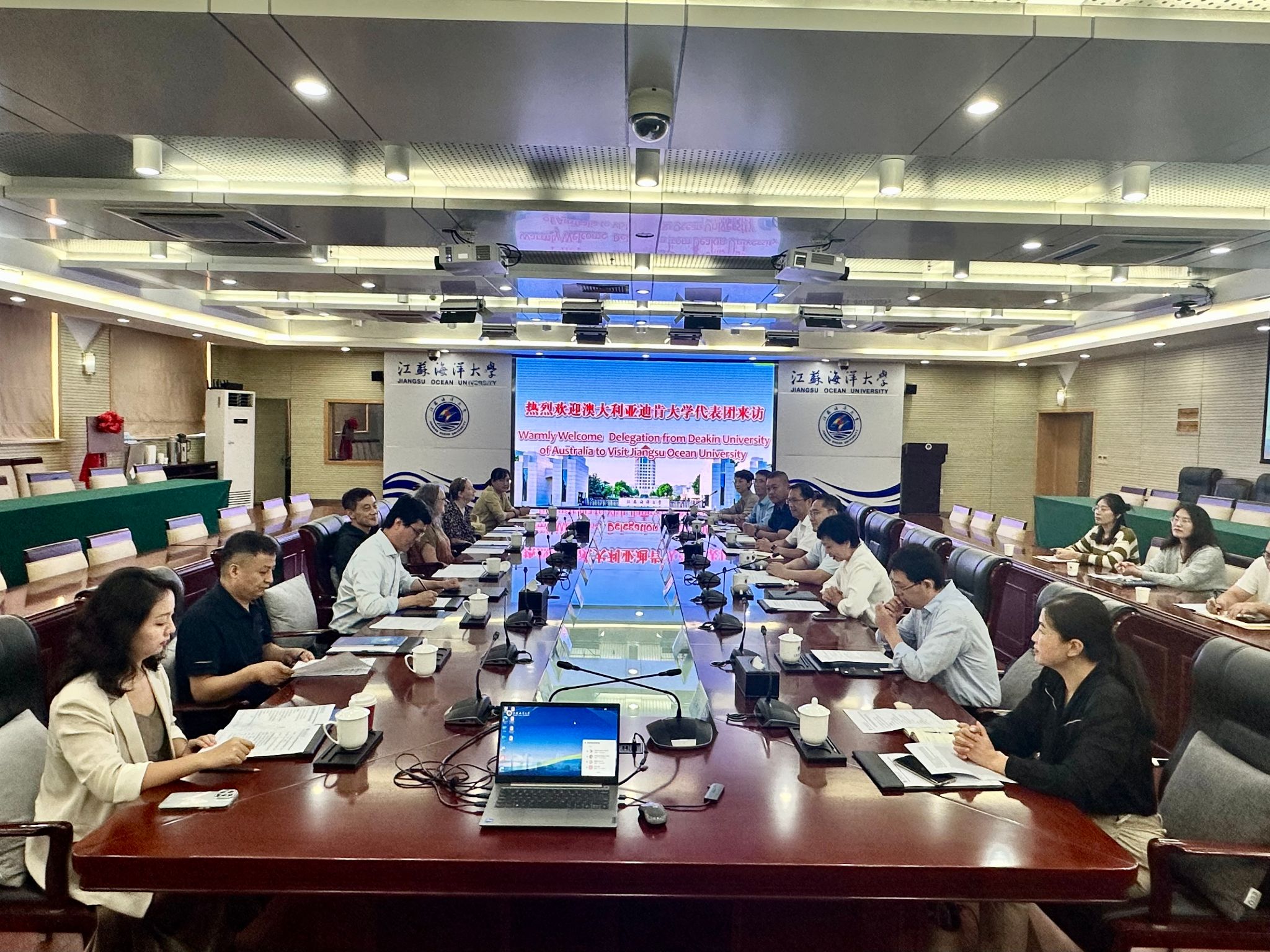 林跃简要介绍了江苏卓越国际交流教育基金会基本情况,并表示基金会将继续对江苏海洋大学与迪肯大学联合培养项目给予大力支持,协助项目加快落地实施。Janine Mc Burnie代表迪肯大学对我校的热情接待表示感谢,并从学校历史、地理位置、办学特色、学科领域、办学主旨等方面简要介绍了迪肯大学基本情况,并表示希望在两校携手推动下,联合培养项目能够尽快顺利实施。