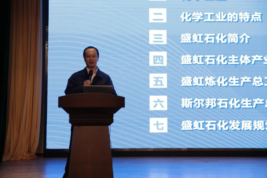 本次“科技之光青年讲堂”还特设了专题报告环节,由盛虹石化项目经理王睿主讲,围绕盛虹石化产业链、生产工艺、企业发展规划以及经营发展理念进行了深入浅出的阐述。未来的化工人才必须具备扎实的理论功底、敏锐的市场洞察力唯有如此,才能在新一轮科技革命与产业变革中抢占先机,为人类社会的可持续发展贡献智慧与力量。
