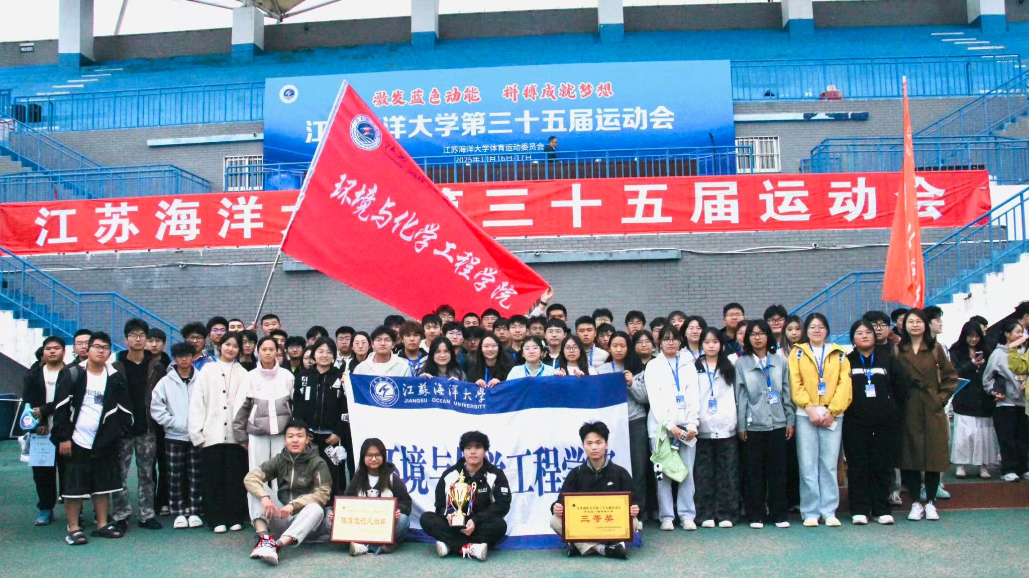 热烈祝贺环境与化学工程学院获校第三十五届运动会学生团体第二名、广播操比赛三等奖、道德风尚奖的好成绩!