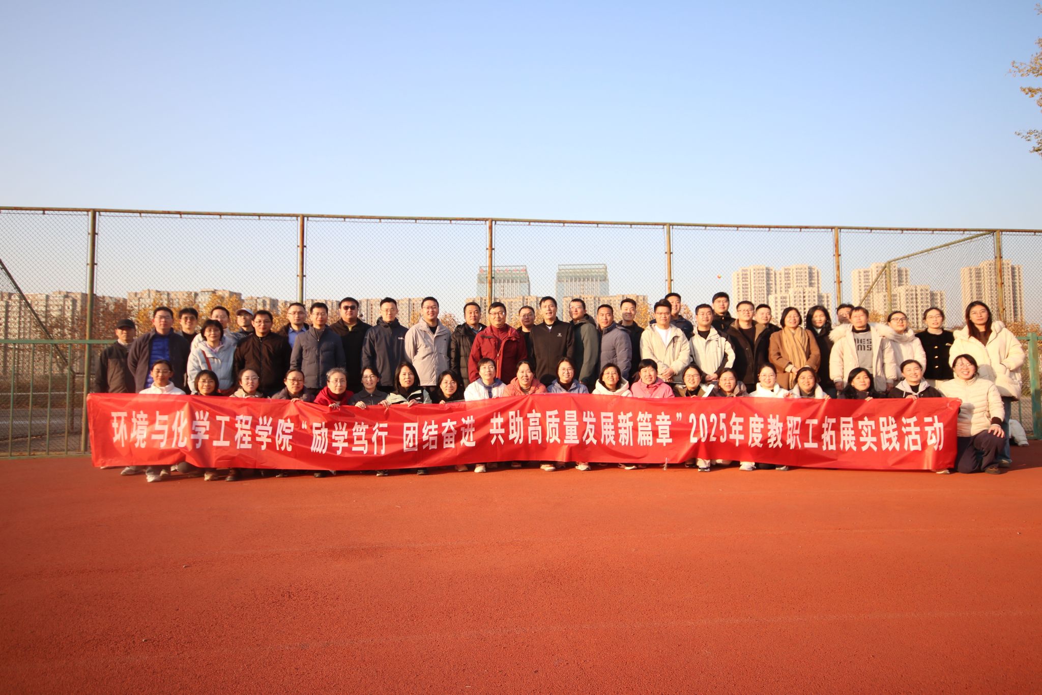 为增强教师间的沟通协作,缓解工作压力,营造积极向上、团结和谐的学院文化氛围,助力学院高质量发展,11月26日下午,环境与化学工程学院举办“励学笃行 团结奋进 共助高质量发展新篇章”2025年度教职工拓展实践活动。学院全体教职工踊跃参与,大家以饱满的热情投入到这场充满趣味与挑战的团队盛宴中。
