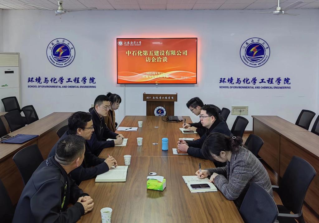 2023年4月3日上午,中石化第五建设有限公司走进我院开展校企合作交流会。中石化五建公司党委组织部副部长贾雄、华东分公司综合部主任刘邦涛、连云港工程项目办公室主任于涟,环境与化学工程学院院长张东恩、党委副书记王静、辅导员徐虎林参加交流会,会议在主楼1003举行。