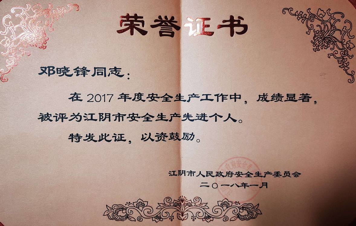 参加工作以来,邓晓锋同志光荣当选共青团无锡市第19次代表大会代表,先后被评为2017年江阴市安全生产先进个人、2017年青阳镇先进工作者、2018年青阳镇先进工作者、2019年青阳镇先进工作者、2020年江阴市打好污染防治攻坚战先进个人。