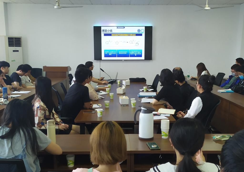 报告会上,胡卫明博士结合他攻读博士学位的经历,介绍了合成桥链二芳基轴手性化合物的不对称合成的过程,详细讲述了桥链二芳基轴手性化合物的性能,并向在座的各位研究生介绍了其博士期间的心路历程。他表示,每当实验遇到困难,自己应当去仔细分析实验中存在的问题与不足,并勉励各位研究生在科研过程中不要害怕遇到困难,大家一定要相信工夫不负有心人,在经过反复的实验之后,一定会取得令人满意的成果。
