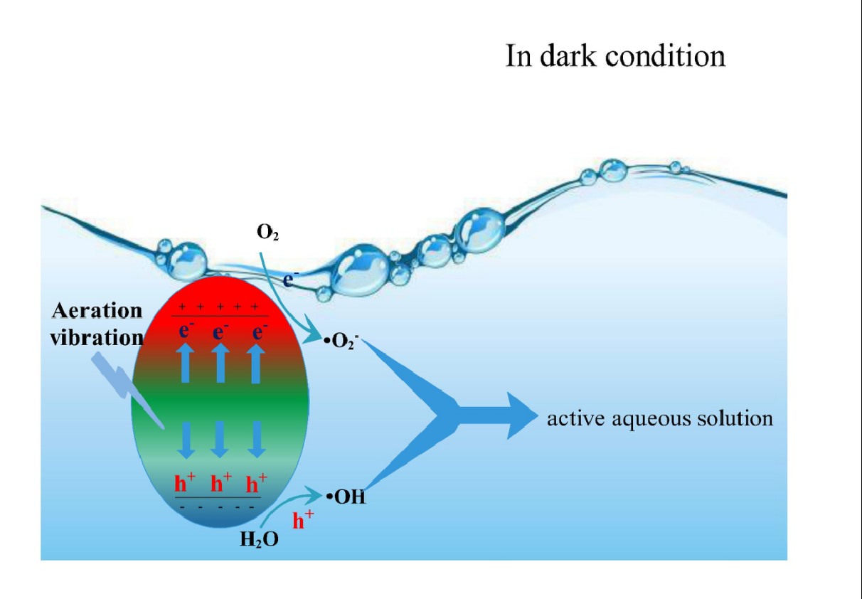 4.Piezoelectricity catalyzed ROS generation of MoS2only by aeration for wastewater purification. Research on Chemical Intermediates, 2021, 47, 4763-4777. MoS2因其高效的电子空穴分离效率、优异的光吸收能力成为当下热点探究的光催化材料之一,但其光照或超声的严苛条件使得其在实际应用方面引人诟病,为了探究其在实际中低成本、低能耗的可能性,团队此次以MoS2作为研究对象,实现了仅在曝气的条件下对热点水体污染罗丹明B的高效降解,并对其压电催化的机理进行了深入的探究。