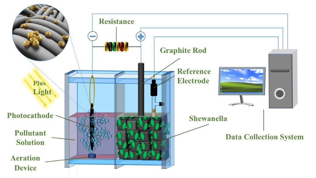 2. Microbial coupled photocatalytic fuel cell with a double Z-scheme g-C3N4/ZnO/Bi4O5Br2cathode for the degradation of different organic pollutants, International Journal of Hydrogen Energy, 2022, 47, 3781-3790.通过构筑双Z-scheme g-C3N4/ZnO/Bi4O5Br2异质结复合催化材料,并以此材料作为阴极耦合生物阳极,构建了生物-光催化的燃料电池体系,可降解不同类型污染物,降解效率分别达到93%及82%。