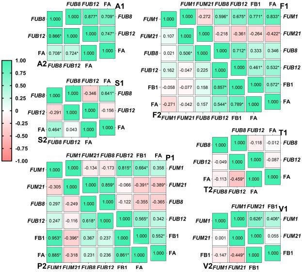 董霆同学在Toxins(中科院2区期刊,IF 5.075)期刊上报道了环境因素对玉米穗腐病病原菌-藤仓镰刀菌复合群(Fusarium fujikuroi species complex, FFSC)生长、毒素合成以及基因表达的影响,揭示了aw和温度显著影响FFSC所有种的生长,在30 ℃和0.99 aw条件下,FFSC所有菌株的生长速率和生物量都达到了最大值,并随着这两个因素的降低而降低。水分活度在0.98和0.99的条件下有利于毒素的积累,但不同菌株中各种非生物因素的交互作用对真菌毒素水平的影响不同。除了F. verticillioides剩余菌株都能够合成镰刀菌酸(FA),伏马毒素(FB)是部分菌株(F. fujikuroi,F. proliferatum和F. verticillioides)的主要代谢产物。FA和FB1的最大合成量通常在20~25 ℃条件下;串珠镰刀菌素(MON)仅在F. andiyazi和F. fujikuroi中检测到,前者在20 ℃的条件下能产生高浓度的MON。镰刀菌生物合成基因在环境条件下的表达谱存在较大差异,表明这些基因可能具有菌株特异性。FB1浓度与FUM1表达量呈正相关,而FUB8和FUB12与FA产量的相关性在F. andiyazi、F. ujikuroi和F. subglutinans中也能观察到类似的结果。这项研究为进一步开展玉米穗腐病相关研究提供基础信息,为综合治理提供理论基础和科学依据。