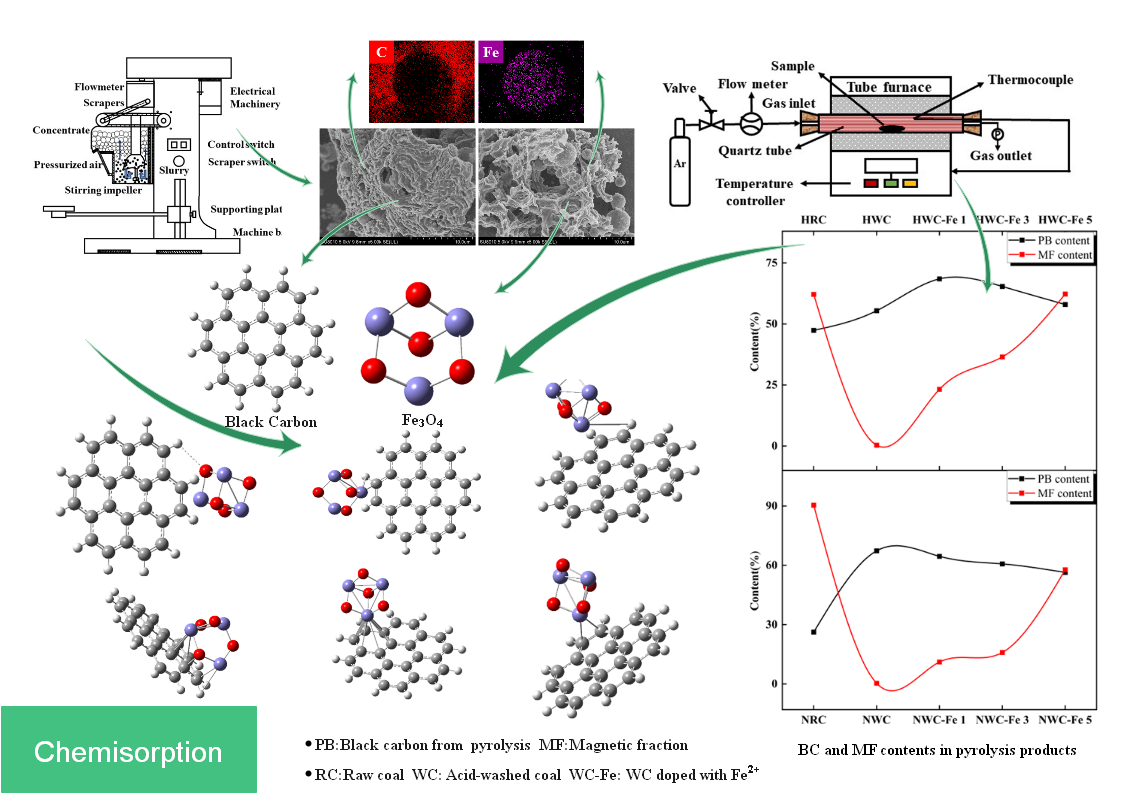 李梦瑶同学对比研究燃煤电厂粉煤灰、黑碳以及磁性矿物的形态、矿物学特征差异以及磁学特性,探讨黑碳与磁性矿物的结合方式,重点从分子水平研究磁性铁氧化物与黑碳之间的化学键、形态及其结合方式。结果表明在煤燃烧衍生黑碳过程中磁性矿物参与了其形成过程,对其产生具有一定的抑制作用,两者形成碳包覆磁性铁氧化物结构或发生吸附现象,通过量子化学计算也证实了两者间的化学吸附作用。这一结果将进一步了解黑碳的环境行为机制和过程,明确黑碳污染的途径和环境风险,为构建以污染源“磁性指纹”信息为特征的黑碳磁性示踪新方法提供理论基础。相关成果发表在国际权威期刊Science of the Total Environment, 872 (2023) 162059(IF=10.753)。