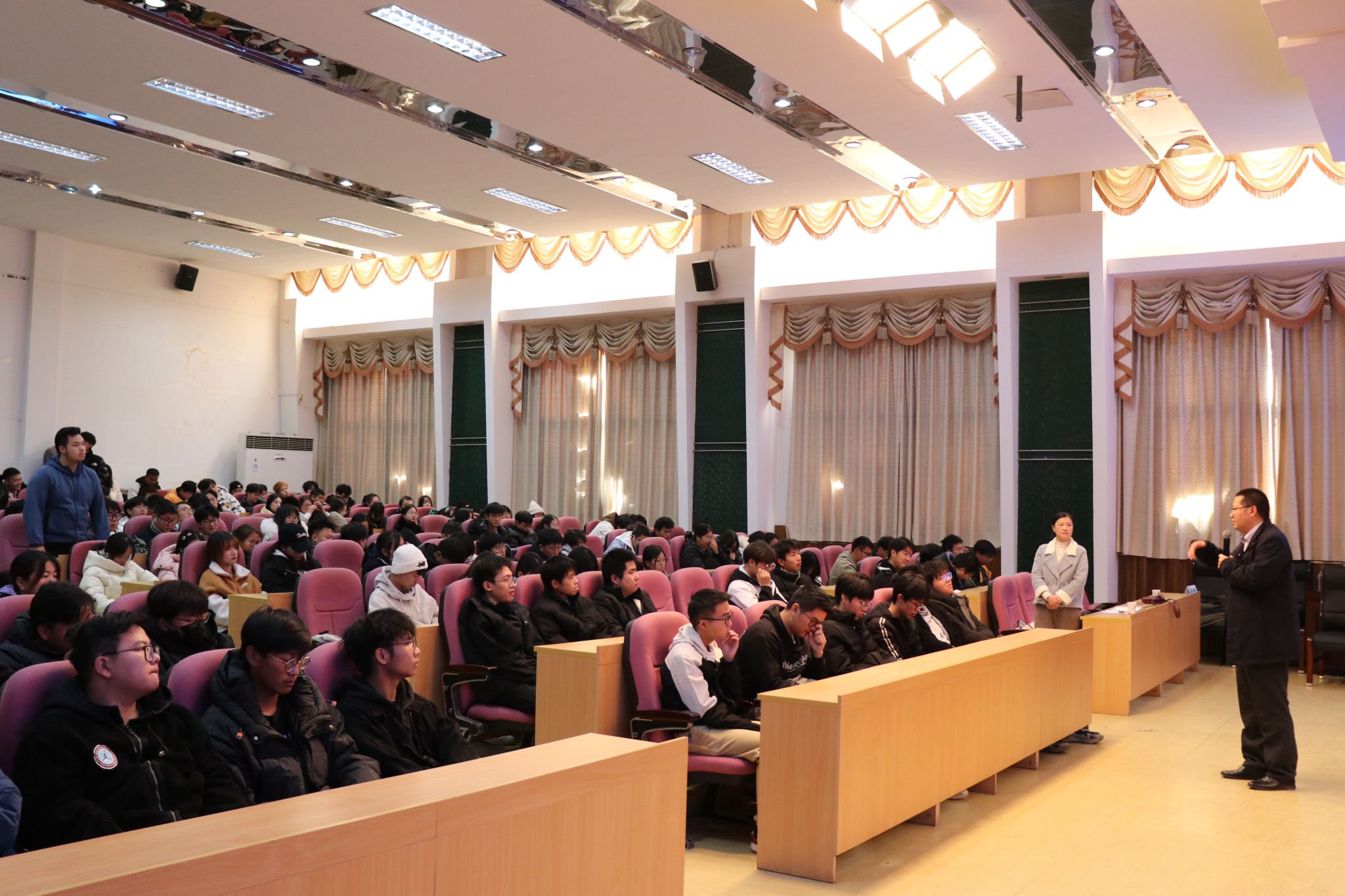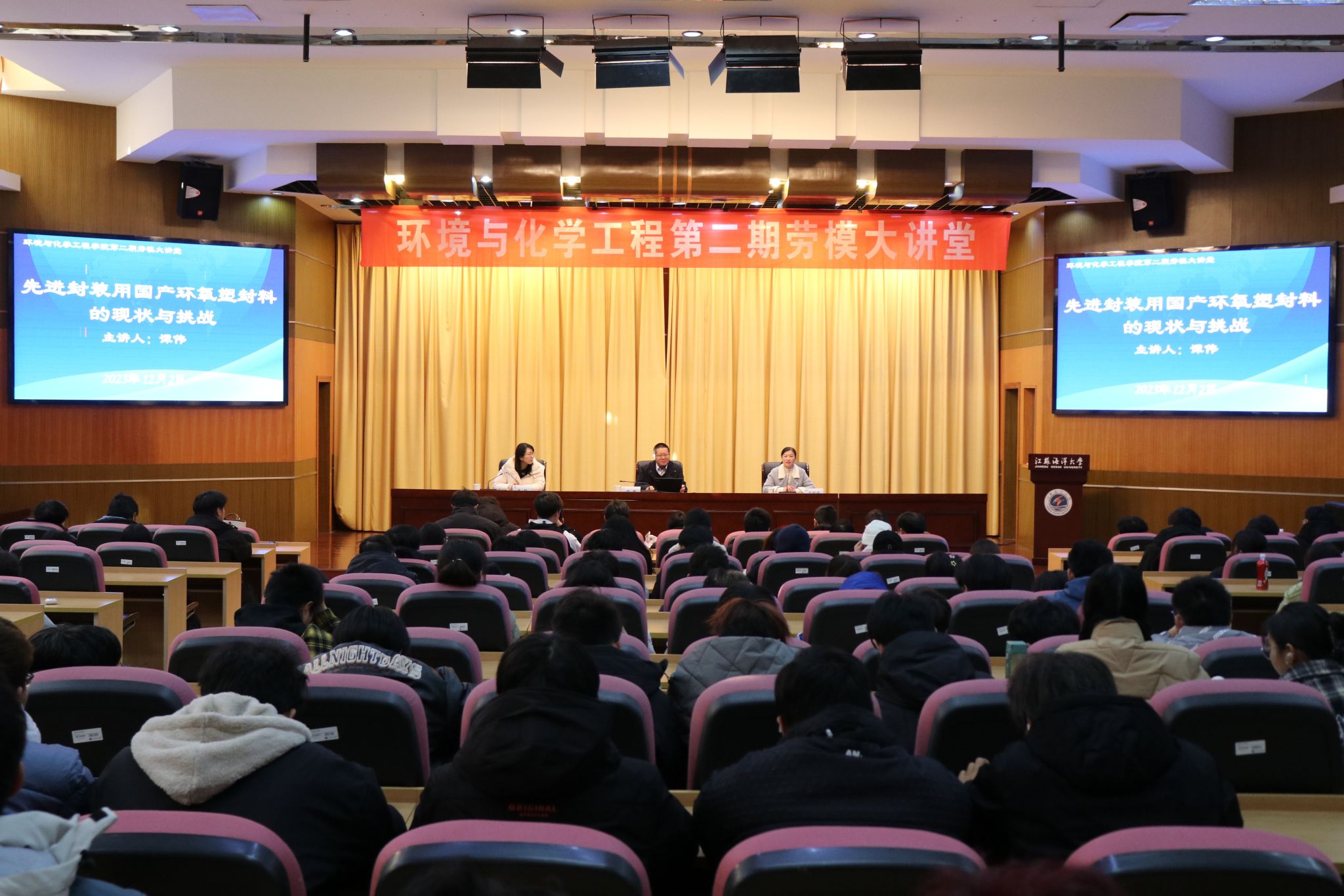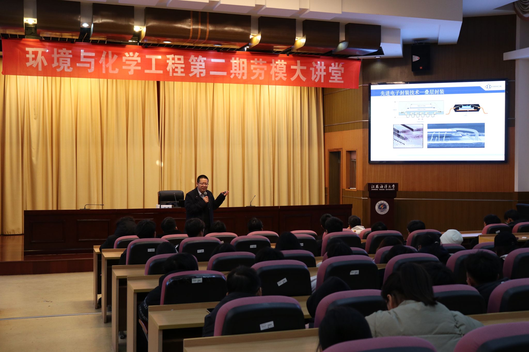 为弘扬劳模工匠精神,积极推进劳动育人工作,将劳模精神、劳动精神、工匠精神融入新时代劳动教育全过程,12月2日下午,环境与化学工程学院在文博楼报告厅举办了第二期劳模大讲堂活动,本次大讲堂邀请江苏省五一劳动奖章获得者、江苏华海诚科新材料股份有限公司研发部经理谭伟作为主讲人。报告会由副院长马娟娟主持,院党委副书记王静及学院师生代表180余人参加了报告会。