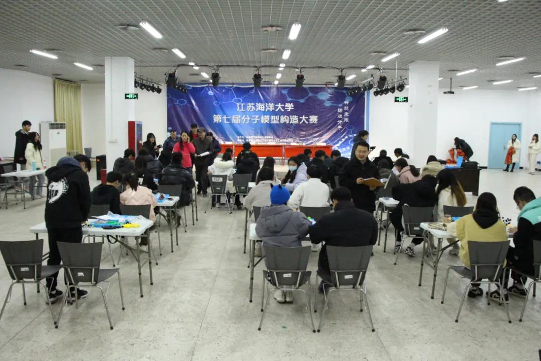 12月16日晚6时30分,江苏海洋大学于兴海楼举办校第九届科技节之第七届分子模型构造大赛决赛。环境与化学工程学院有机化学专业王建教授、化学工程系张珍明教授、安全工程专业施鹏飞教授、材料科学与工程系班鑫鑫副教授担任评委。江苏海洋大学团委副书记朱小明致辞,环境与化学工程学院党委副书记王改红、全体辅导员参加活动。高材1211班张笑天和安工1212班王凌云担任主持人。