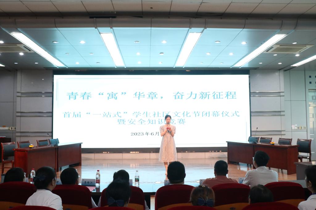 学生社区文化节是我院深入学习和践行社会主义核心价值观、丰富学生社区文化生活的重要载体,6月16日,环境与化学工程学院安全知识竞赛决赛暨首届“一站式”学生社区文化节闭幕式在艺术楼报告厅顺利举办,校学生工作处副处长张志浩、宿管科科长马奔、江苏君怡物业管理有限公司总经理李传江、江苏迎宾物业管理有限公司人资经理陈桐、学院党委副书记王静出席活动,学院全体辅导员与学生代表参加本次活动。