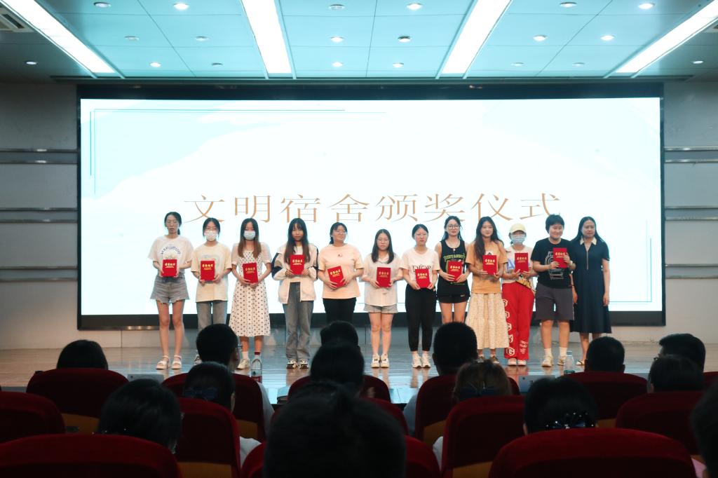 闭幕式上,与会领导分别为安全知识竞赛活动代表、获得学习型宿舍、文明宿舍学生代表、2023年“最美宿管员”代表颁奖。王静致闭幕辞,她向受表彰的先进寝室与个人表示祝贺,对校学生工作处的指导和大力支持表示感谢。她提出两点希望和要求:一要牢记“生命至上、健康卫生、温馨和谐、全面发展”的宿舍“家”要求,充分展现我院学生社区文化生活和良好的精神风貌;二要充分发挥学生社区育人阵地功能,将学院学生社区建造成“三全育人”实践基地、学生党建前沿阵地,提升学生社区教育管理服务水平,赋能学生全面发展、健康成长。