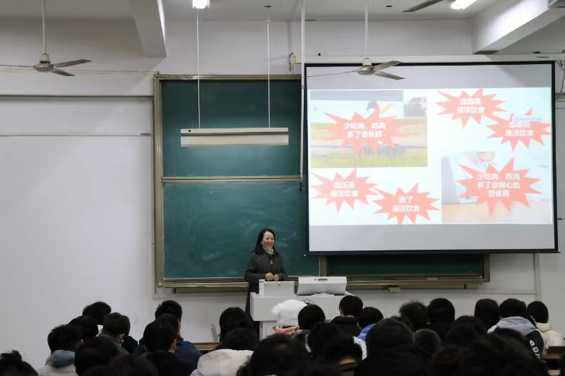 健康的生活方式要从“合理膳食”开始,报告会上,胡喜兰教授通过著名化学家鲍林名言“优化的营养是未来的药物”入题,引出化学与饮食健康的联系。她从人类饮食发展史、人体是个化工厂、改善膳食结构和科学饮食法则等四个部分内容展开,讲解了七大营养素、九大类食物对人体的影响以及如何合理良好的摄入,让同学们对饮食健康有了更深层次的了解与认识。报告中,胡老师用巧妙地提问、生动的实例和通俗易懂的讲授,潜移默化地引导学生树立保健意识,养成健康饮食习惯和生活方式。