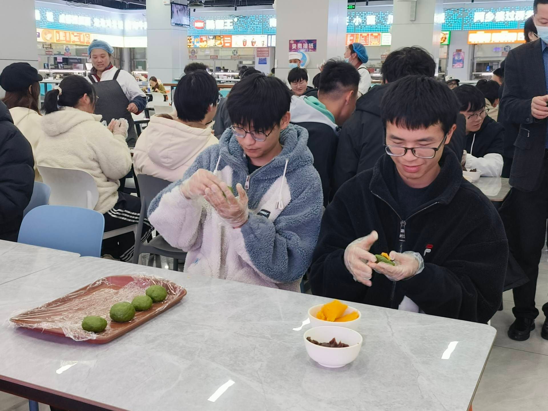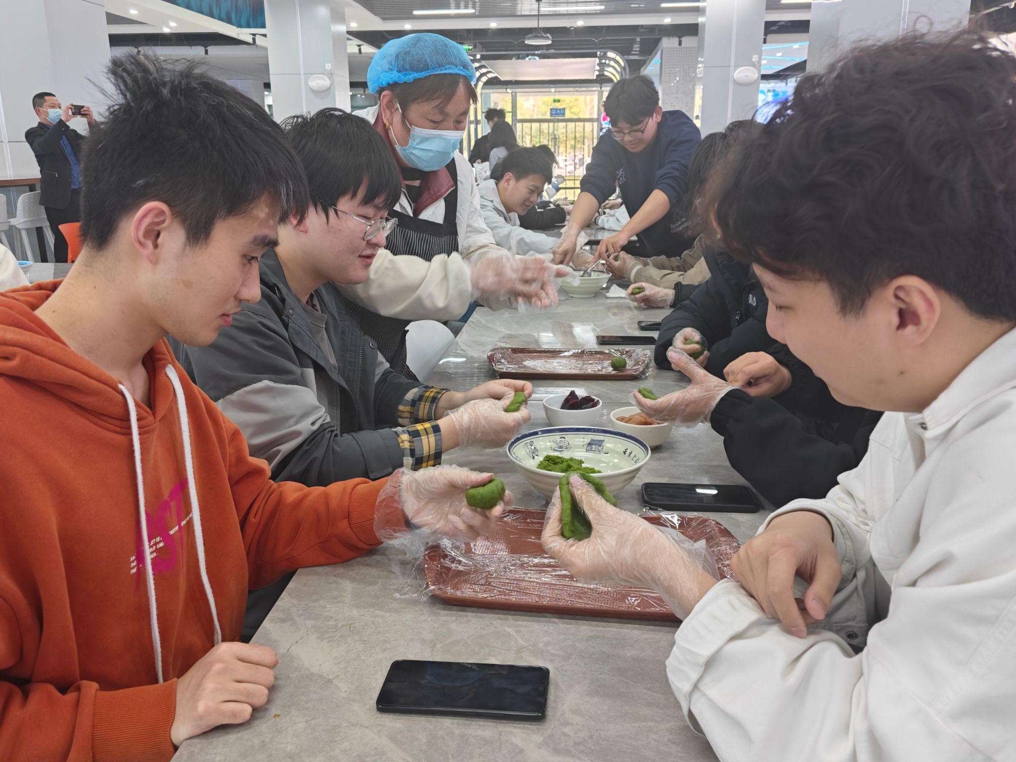活动期间,同学们认真倾听食堂专业人员讲解包青团的制作过程及注意事项。“捣青草为汁,和粉做粉团,色如碧玉”,同学们通过搓、压、捏、揉等多道工序,制作出一个个鲜嫩青绿,圆润饱满的青团。