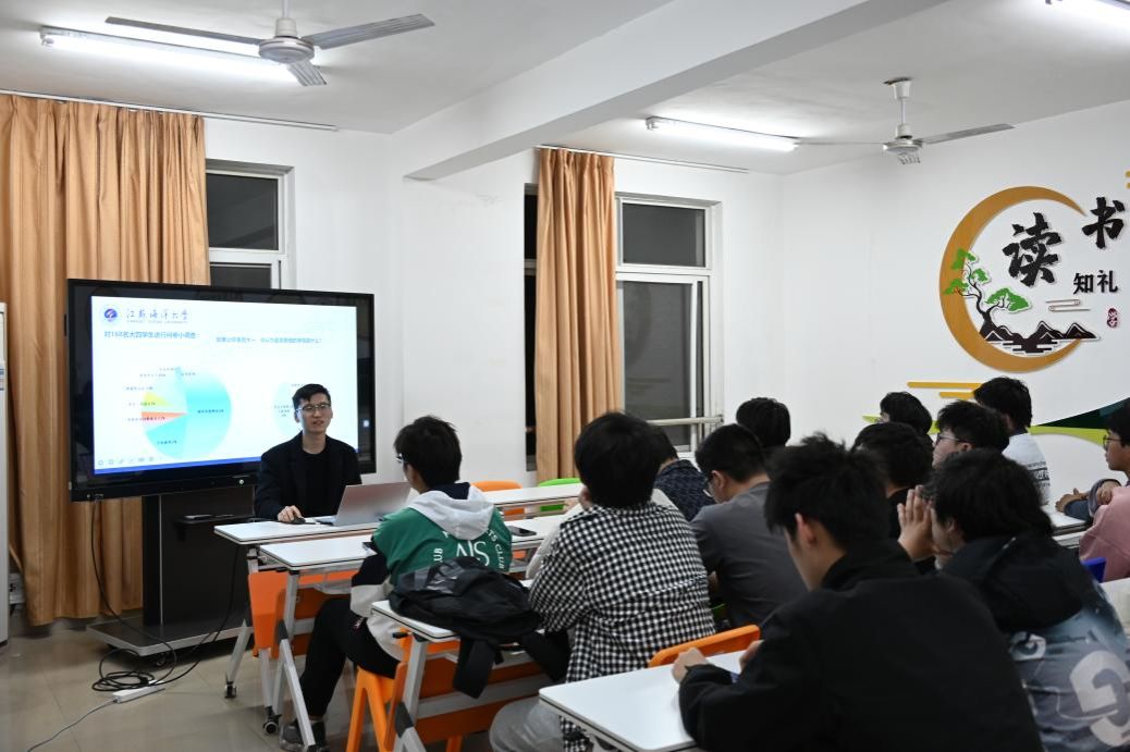 接着,徐虎林从“对于低年级学生来说需要解决的疑问”“为什么要进行大学生涯规划”“如何进行大学学涯规划”以及“大学四年该如何度过”四个方面开展生涯启蒙教育。他首先介绍了学校、学院毕业生的就业去向,让学生们对未来的自身的职业发展方向有了清晰的认识。他指出,大学生涯规划是一个有计划、有掌控的自我实现的过程,要把握大学生涯探索的关键时期,注重个人的自我认知和发展,不断探索自己的兴趣、优势和目标,为未来的职业发展打下坚实的基础。讲座中,他结合部分优秀校友代表的杰出事迹,激励同学们提升自身硬实力,努力学习为自己的未来打下坚实的基础。最后,徐虎林分别从考研、考公考编、就业创业三个方向为学生们提供了细致的学业规划指导,同时对同学们的就业前景表达了殷切期望。