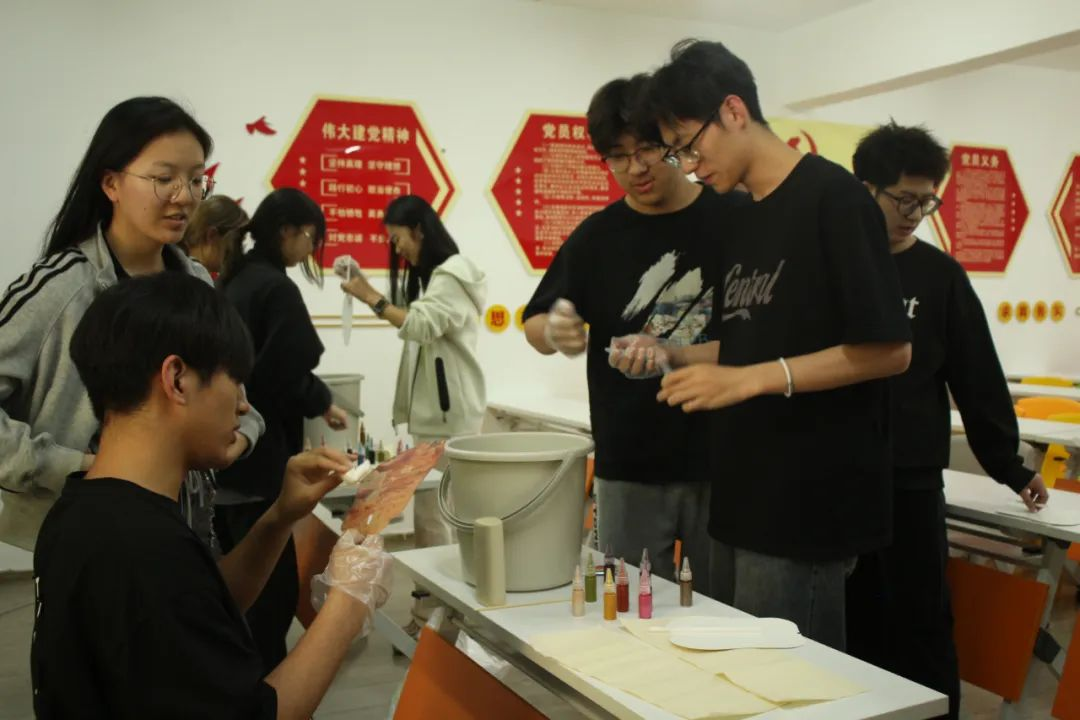活动中,同学们带上手套,在工作人员的指导下,聚精会神地投入到漆扇制作中。他们或挑选着漆液的颜色,或在水面上轻轻绘制着图案,或小心翼翼地涂抹着漆层。漆液在水面上流淌,形成一道道美丽的纹理,仿佛是大自然的馈赠。随着活动过程的推进,一幅幅精美的漆扇作品逐渐呈现在大家面前,它们或清新淡雅,或艳丽夺目,每一把都饱含着同学们的的心血与创意。