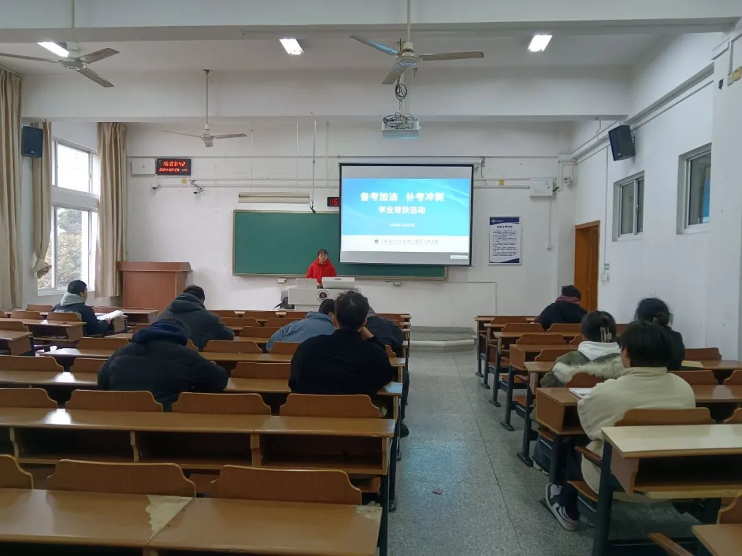 本次学业帮扶活动中,学院针对挂科率较高的专业课程,邀请专任教师以答疑形式开展课程辅导,帮助备考有困难的同学们有针对性地复习和备考。各班级召开专题班会强调遵守考试纪律,诚信考试,给予同学们信心和鼓励。