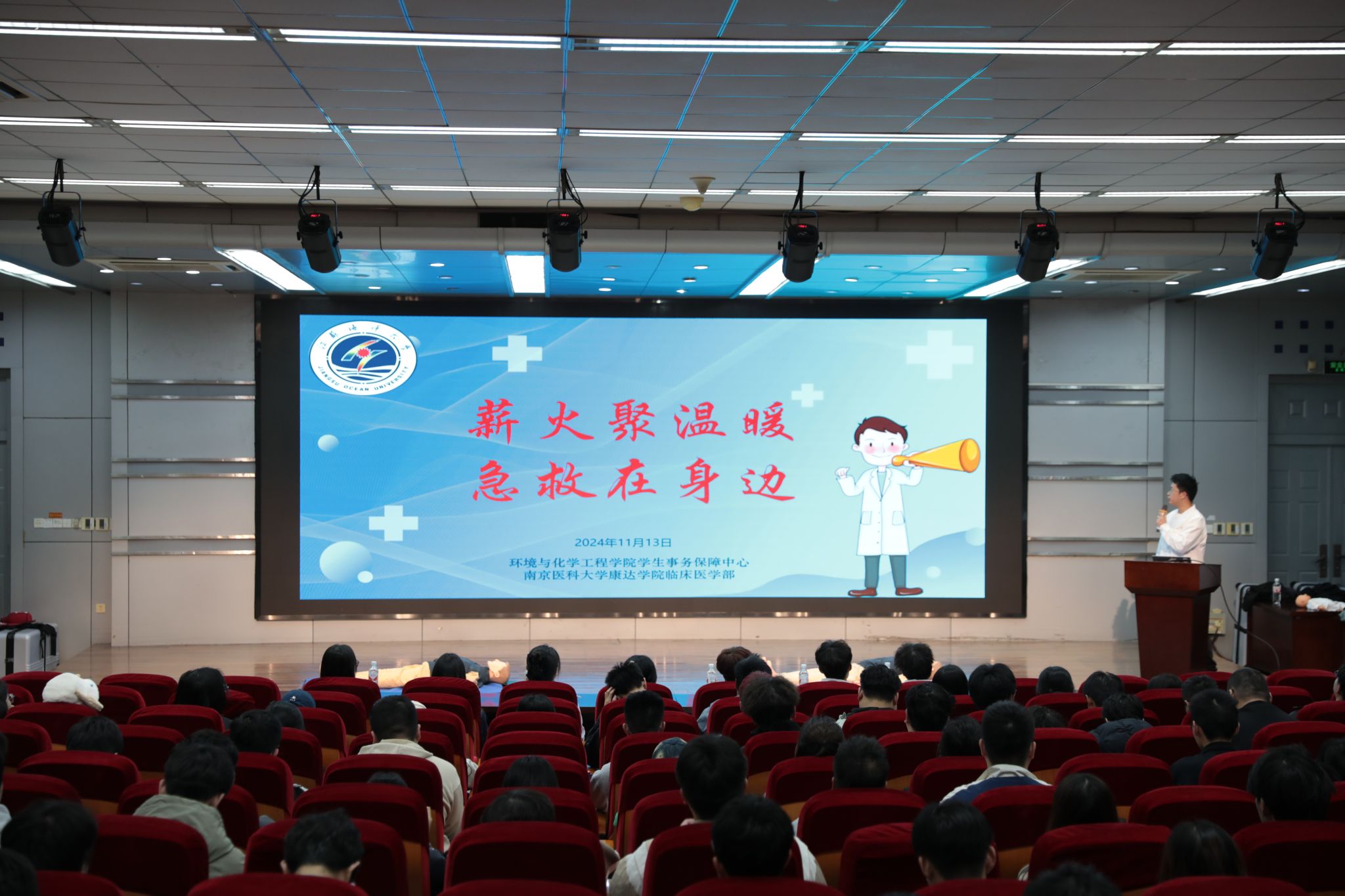 为了让同学们掌握基本急救技能,提高学生安全意识,11月13日下午,环境与化学工程学院学生事务保障中心联合南京医科大学康达学院临床医学部在艺术楼报告厅举办了“薪火聚温暖,急救在身边”劳动教育社会实践活动。
