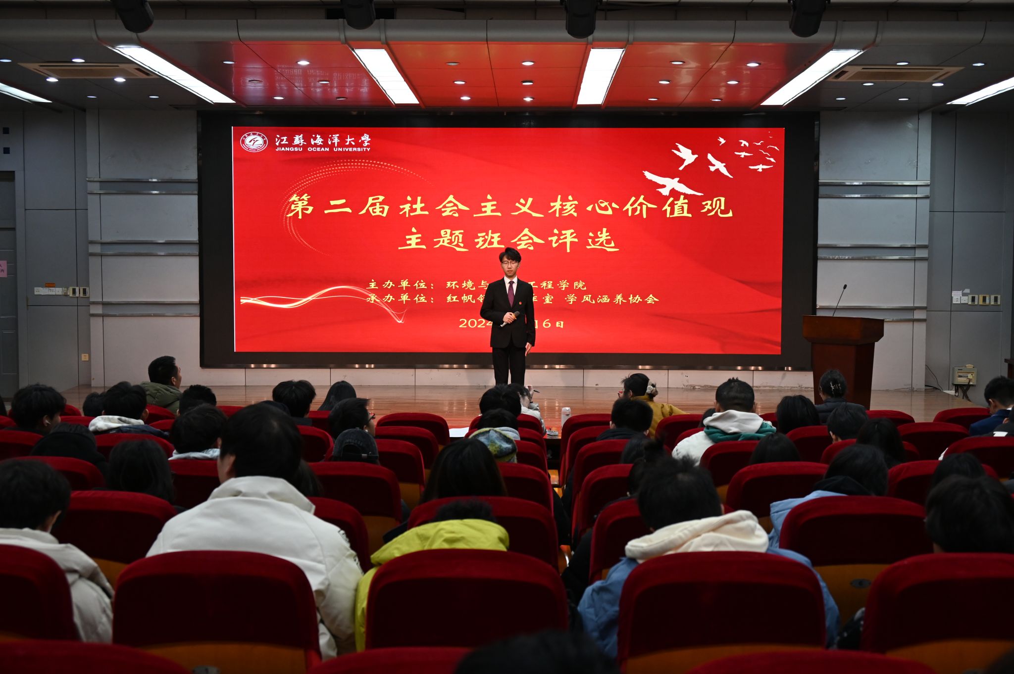 12月6日,环境与化学工程学院在艺术楼报告厅成功举办了第二届社会主义核心价值观教育主题班会评选活动。此次活动旨在深入学习贯彻党的二十大精神,进一步弘扬社会主义核心价值观,提升学生的思想道德素质和综合素质。学院党委副书记王静和各专业辅导员出席本次活动并担任评委。