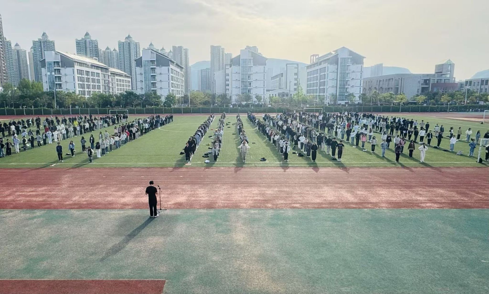 4月16日清晨,环境与化学工程学院在校东田径场举行“践行社会主义核心价值观共创校园文明新风尚”主题升旗仪式。学院党政领导、全体辅导员及2023、2024级同学参加了本次升旗仪式。