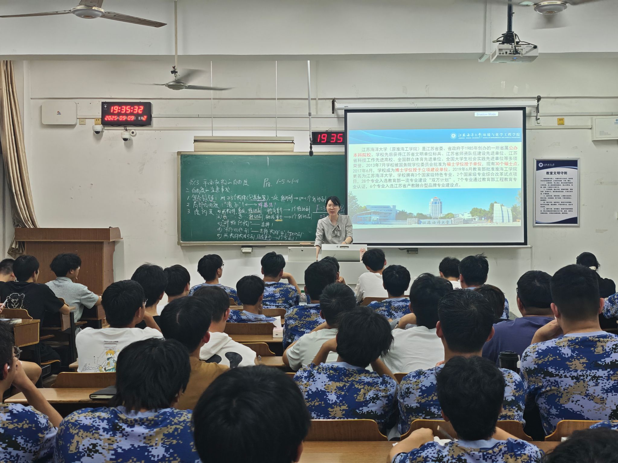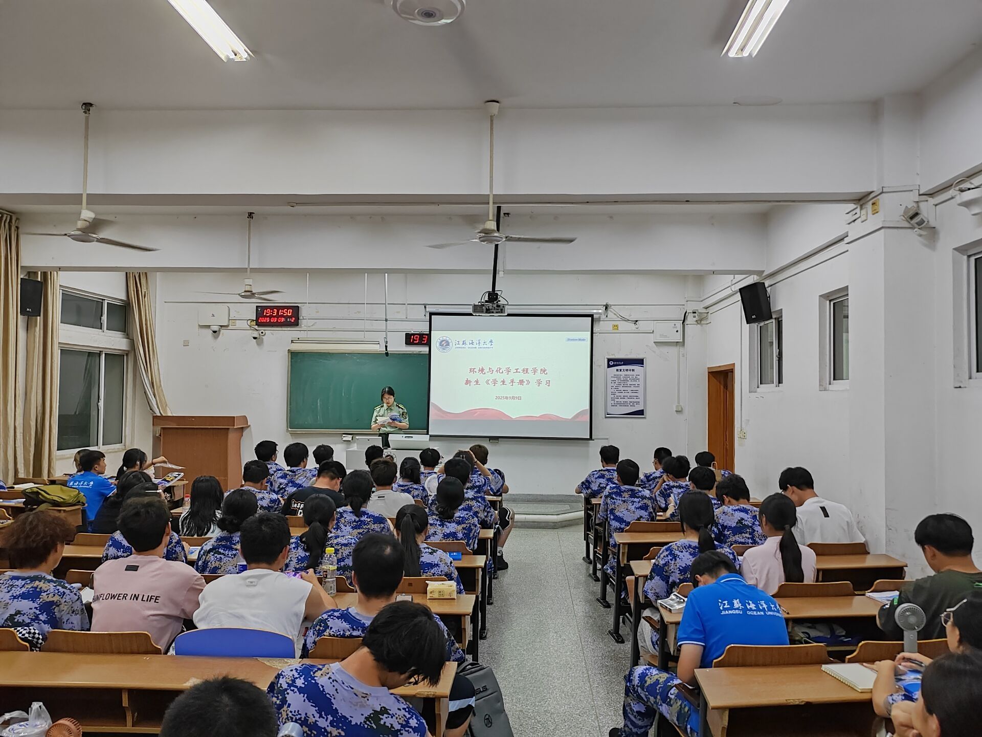 为助力2025级新生更好地适应大学生活、了解校规校纪,系好大学阶段的“第一颗扣子”,9月9日晚,环境与化学工程学院党委副书记王静及全体辅导员走进25级新生,组织开展了《江苏海洋大学学生手册》专题学习交流活动。