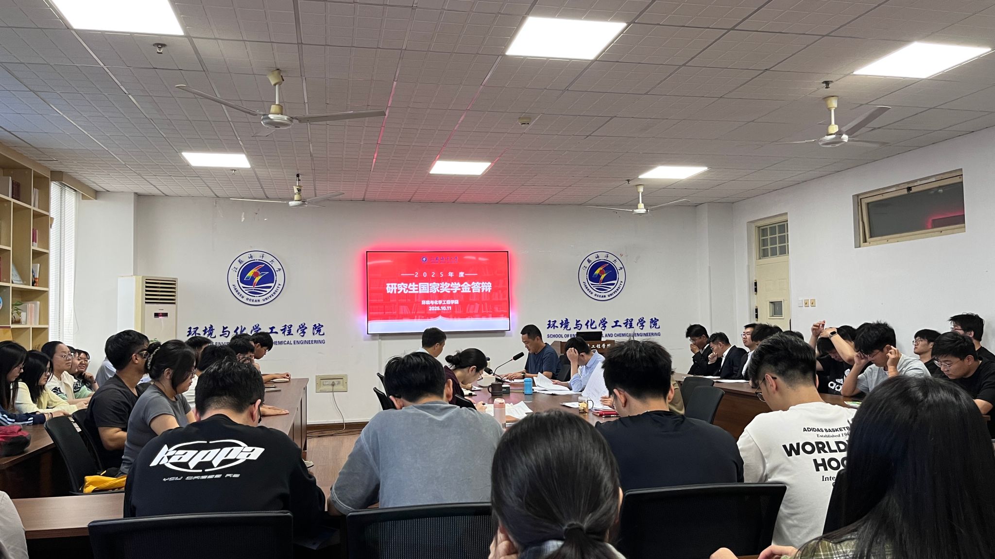 为充分发挥国家奖学金的激励导向作用,选拔综合素质突出的学术创新人才,10月11日下午,环境与化学工程学院在文达楼 1003会议室举办了2025年研究生国家奖学金答辩会。经过个人申报、导师推荐、学院初审等多轮遴选,4名来自材料学、材料物理与化学、环境工程等专业的硕士研究生进入答辩环节,院长张东恩等五位专家教授组成评审小组,副院长陶传洲主持答辩会,2024、2025级研究生到场观摩学习。