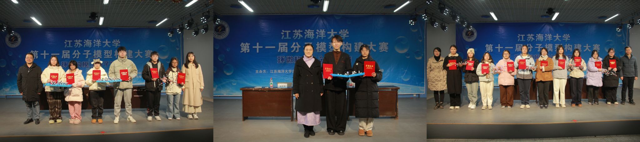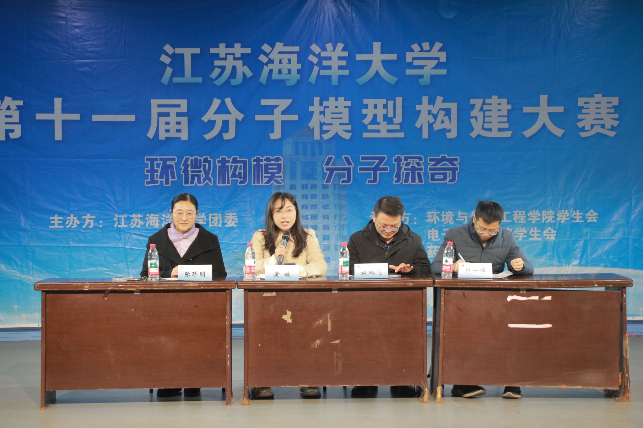 11月21日,江苏海洋大学第十一届分子模型构建大赛决赛在兴海楼二楼活动厅举行。校团委副书记黄媛,环境与化学工程学院张珍明教授、施鹏飞教授、赵一博副教授等四位老师担任大赛评委,学院党委副书记王静、团委书记程艺出席活动,来自各学院的15支优秀团队展开巅峰对决。
