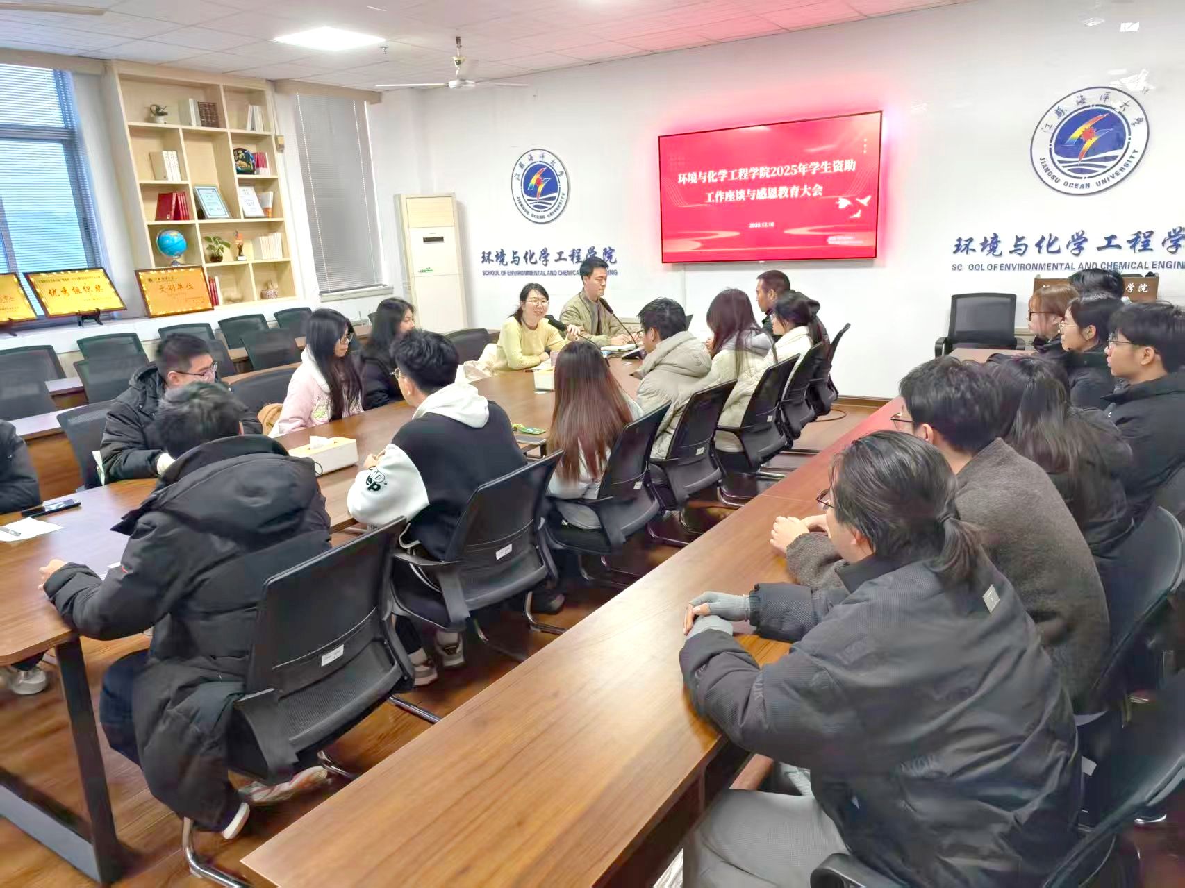 为持续优化学院学生资助工作方法,广泛听取学生对学院资助工作的意见与建议,提升资助育人工作的精准性与实效性,环境与化学工程学院于12月10日下午在1003会议室召开2025年度学生资助工作座谈与感恩教育会。学院党委副书记王静、学工办主任苏成兄、辅导员李冲及各班生活委员和学生代表参会。